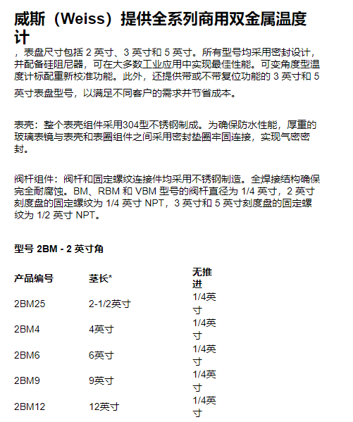WEISS 双金属温度计3RBMS系列