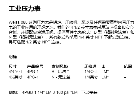 WEISS INSTRUMENTS温度计,WEISS INSTRUMENTS压力表