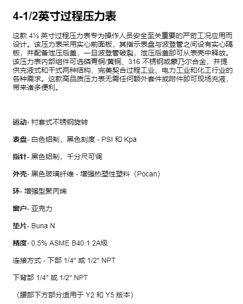 WEISS 4-1/2英寸过程压力表NF4UGY1系列