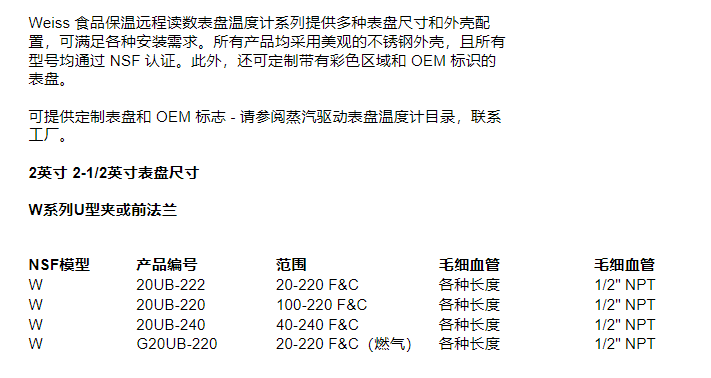 WEISS 餐具洗涤模拟温度计20UB-240系列